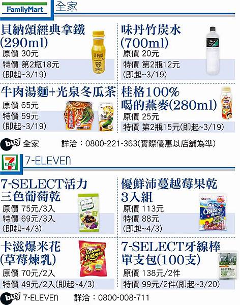 【7-11、全家、萊爾富、OK】3/14 今日特惠情報